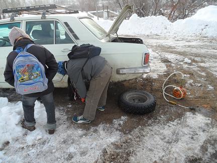 مشایعت به داخل روستا و مدرسه همراهی کنند.در موقع بستن زنجیر چرخ در این